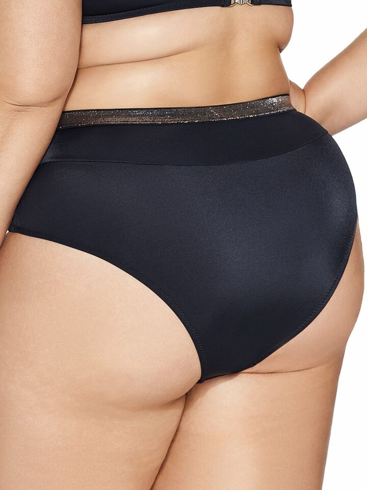 Women’s swim briefs with a built-up cut. Decorative tape at the waist, full sides, covered.
